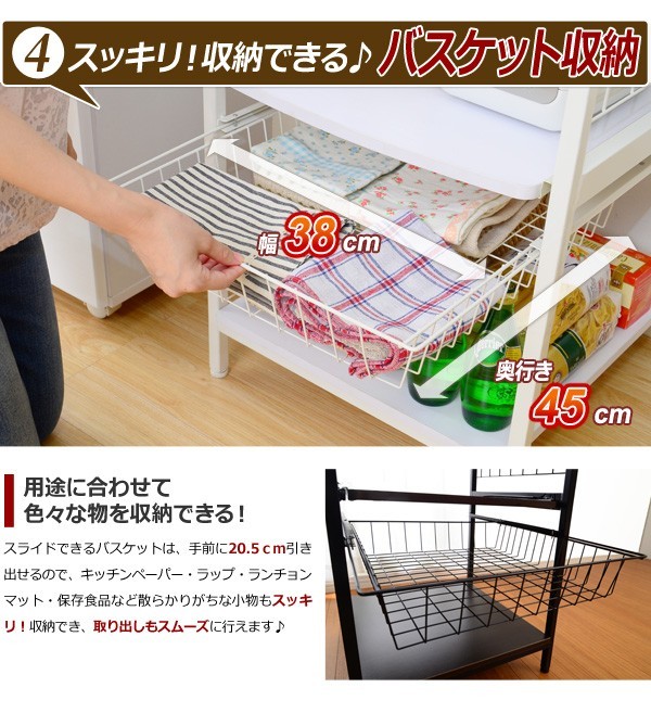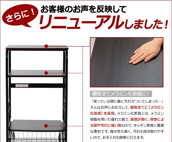 【商品について】※こちらのページは【オルノス(4段タイプ)】のページです※■サイズ:外寸:(約)幅50×奥行き53×高さ112.5cm■カラー:ホワイト ダークブラウン■素材:構造部材:スチール/パーチクルボード表面加工:粉体塗装/メラミン化粧繊維板※商品重量:(約)16kg※コンセント2口あり:合計:1500W■その他:・お客様組み立て商品です。
