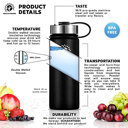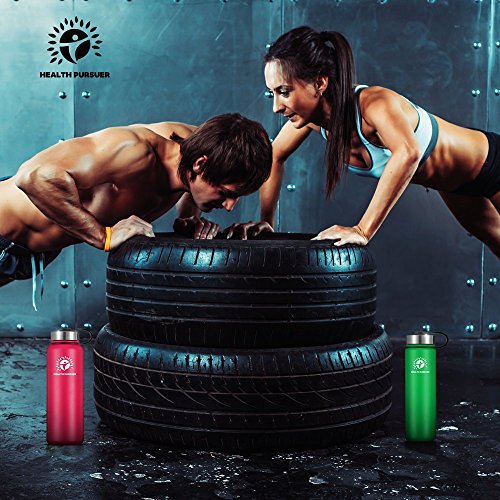 DOUBLE WALLED DESIGN: Health Pursuer bottle tumblers combine medical grade stainless steel and vacuum insulation technology for a no sweat exterior; Hydrate all day to complement your active lifestyle