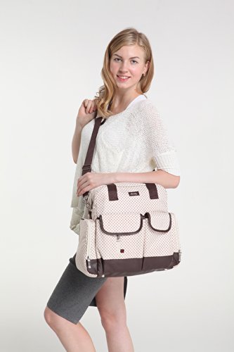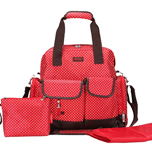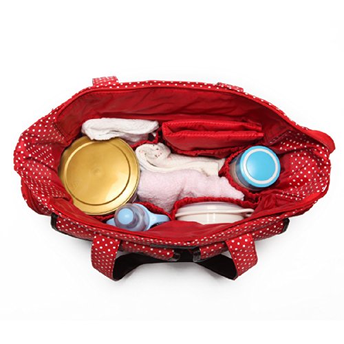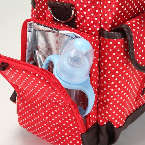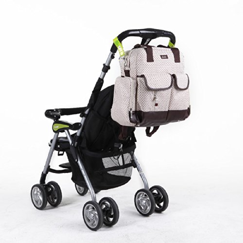 - Feature : Made of durable waterproof nylon, zipper closure, easy to wipe clean. Dimension: Large (L12.6*H13.4*W5.2 inch) / Stroller attachments to your stroller handles, removable padded shoulder strap gives you the option to wear the bag over-the-shoulder or messenger-style or backpack, total with three carrying options, reinforced footed bottom / Accessories: changing pad, shoulder strap, one small waterproof organizer bag, stroller straps and wipes case, total weight: 1120g / 5 external pockets: easy-access exterior pockets for changing pad at the back and 2 large Magnet button pockets on the front. On one side is the deluxe EPE foam warm keep zippered bottle pocket, another pocket with wipes case on the other side / Spacious interior with multiple organizational compartments , 6 interior pockets for nappy or baby stuff