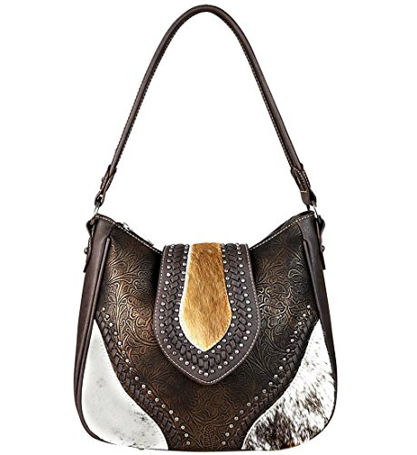 -. Title : TR56-8491 Trinity Ranch Floral Tooled Hair-On-Hide Hobo, New!