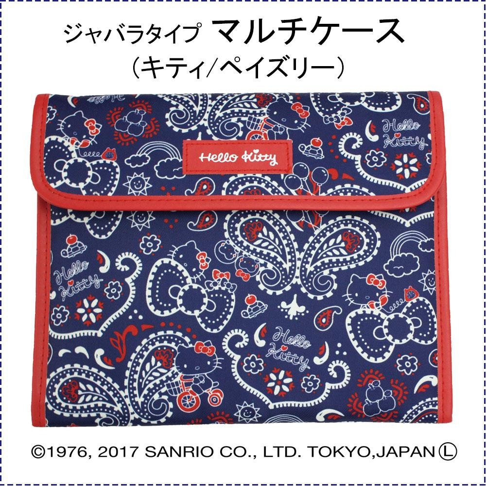 ハローキティとペイズリー柄のおしゃれなマルチケース。テープ式で開け閉めしやすく、13×18cmサイズの母子手帳やカードをまとめて収納できます。 |