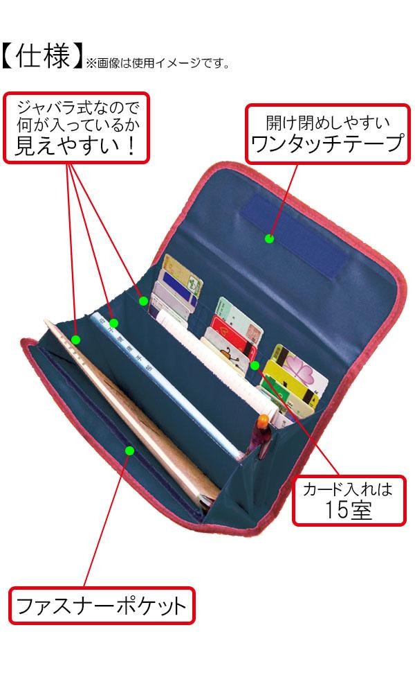 | 仕様 | カード収納枚数:15枚 ファスナーポケット:1つ ジャバラ式ポケット:1つ(3室) |