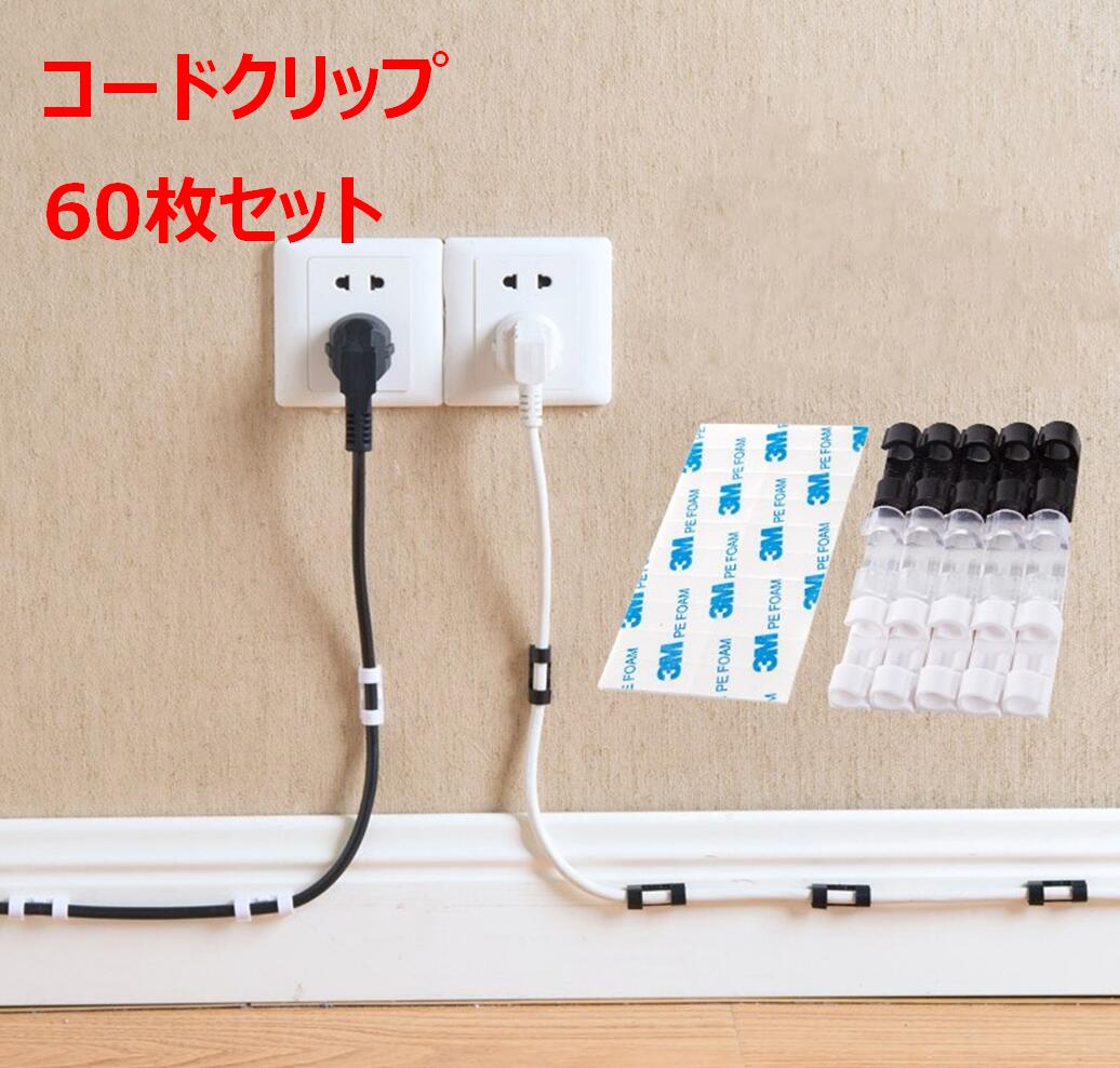 60枚セット コード粘着クリップ 配線収納 3Mテープ付属 固定 ケーブル 収納mmk-j46【1~2日発送】