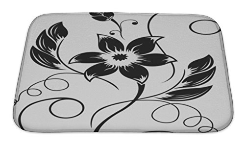 Gear New Flower Black A White Pattern Bath Rug Mat No Slip Microfiber Memory Foam