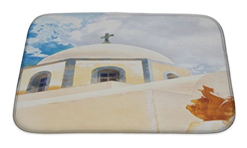 Gear New No Slip Microfiber Memory Foam Fira Catholic Cathedral Digital Watercolor Painting Bath Rug Mat, 24" x 17"