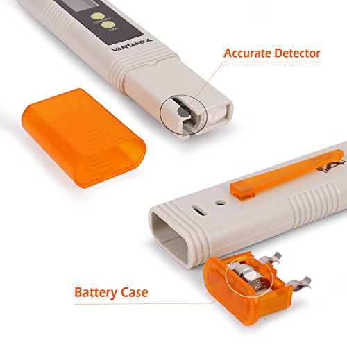 - ★AUTO CALIBRATION: The VANTAKOOL PH meter has an auto temperature compensation feature that adjusts to water temperatures and water quality to give pH readings almost instantly. As well, you can calibrate the tester with one touch button using VANTAKOOL Buffer Powder.