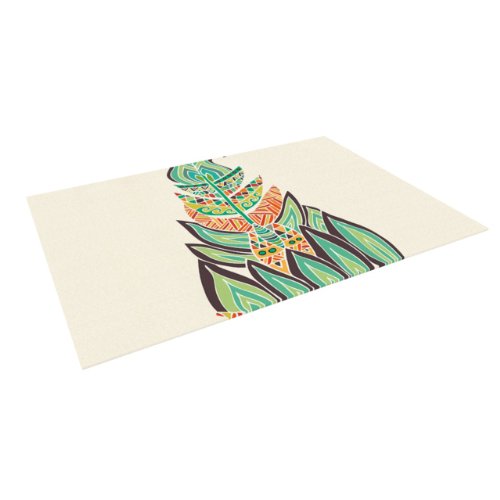 Kess InHouse Pom Graphic Design "Tribal Feather" Green Orange Indoor/Outdoor Floor Mat, 4-Feet by 5-Feet