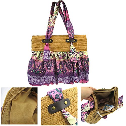 Donalworld Bohemia Floral Straw Woven Bags Summer Beach Shoulder Bag