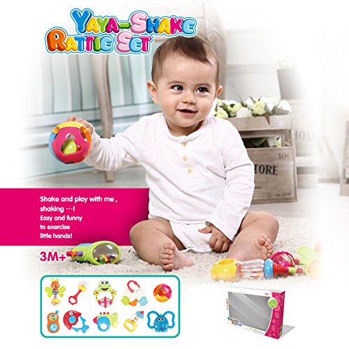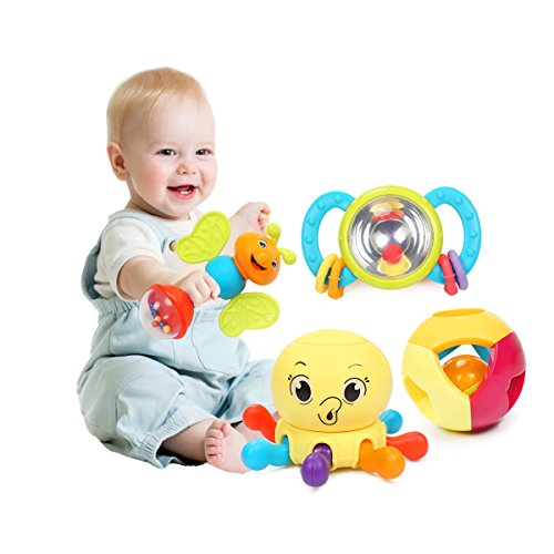 Baby rattle is suitable for baby more than 3 months, it can let the baby practice his ability to grasp, improve baby's grip strength. With music sound when shaking, this baby rattle helps develop baby's hearing.