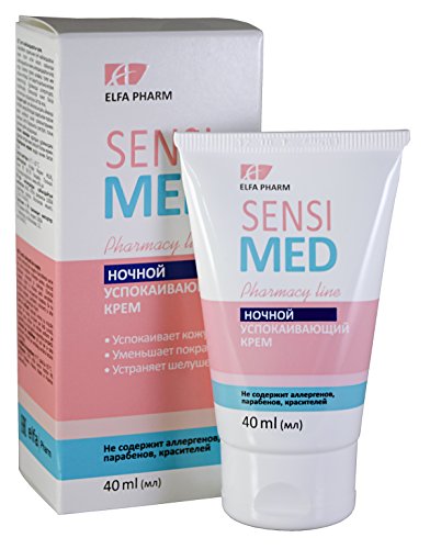 еlfa Pharm Sensi Med. Night Soothing Cream Moisturizes the skin Reduces redness Eliminates peeling Does not contain allergens, parabens, dyes Sensitive skin, unlike normal, reacts negatively to usual irritants: cosmetics, tap water, temperature drops. The reaction manifests itself in the form of redness, irritation, and flaking. Hypersensitivity occurs when the hydrolipid mantle, a barrier, is damaged, which protects it from the adverse effects of the external environment, microtrauma and excessive loss of moisture. Sensitive skin requires a special delicate care with soft and safe means. SensiMED night calming cream treats the skin, providing intense soothing and moisturizing action. Eliminates redness, flaking, and irritation of sensitive skin. Helps her to recover at night. Does not contain allergens, parabens, dyes and other irritants. Active components of the cream: Has a calming effect - zinc gluconate Restores the barrier function of the skin - copper gluconate Softens and restores - allantoin Аpplication: apply the cream lightly circular massage movements on the cleansed face, avoiding the area around the eyes. Precautions: increased individual sensitivity to individual components.Feature