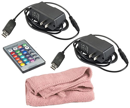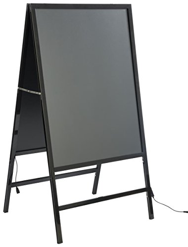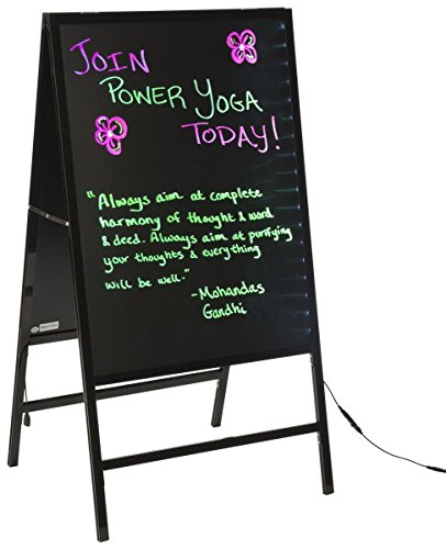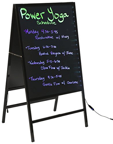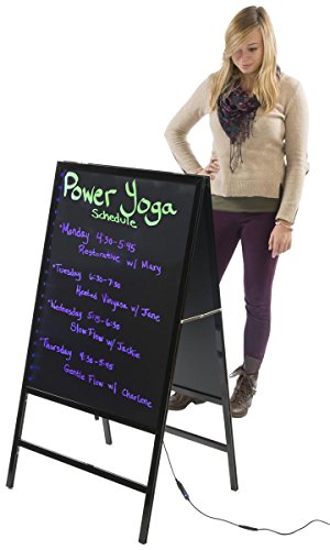 Both sides of the a-frame are lit by a strip of LED lights. Choose from 4 animation settings and 16 color options. A remote and cleaning cloth are included.