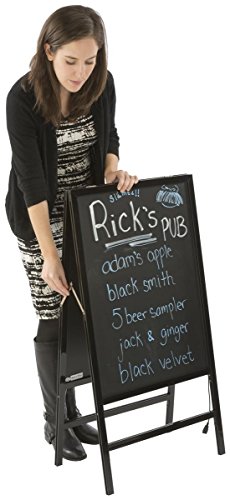 Double sided sidewalk sign has an a-frame design. Portable and mobile, folds up in seconds!