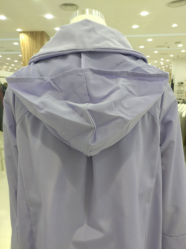 하이넥속에 있는 같은 원단의 후드처리가 더욱 유니크하면서도 멋스러운 디테일을 자랑합니다