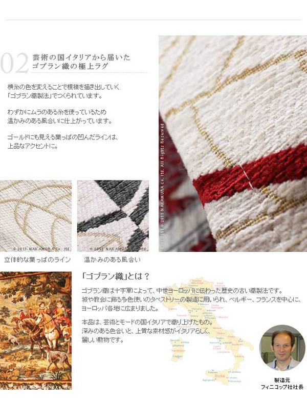 イタリア製ゴブラン織ラグ Camelia〔カメリア〕200×280cm ラグ ラグカーペット 長方形 7