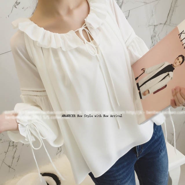 【入荷後営業日2,3日以内出荷予定 通関待ちや不良により出荷遅くなる場合はメールにてご連絡いたします。メール受信設定によっては正常に受信されない場合はございますので、 弊社からのメールを予め受信頂くようご設定くださいませ。】 トップス シャツブラウス シフォンブラウス フレア レディス レディース 春 新作 2018ボリューム袖ゆったりシフォンシャツブラウス◆素材:ポリエステル