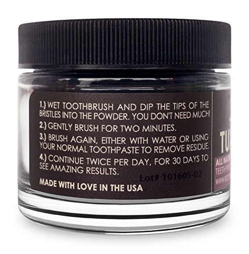 Dip a moist toothbrush in the powder and use every day to gradually and gently whiten teeth while brushing. Use in place of regular toothpaste, or brush with your normal toothpaste immediately after. Contains Organic Coconut Activated Charcoal, All Natural Bentonite Clay, Organic Mint Extract, Organic Orange Peel Extract