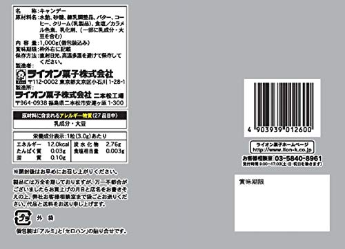 原材料:水飴、砂糖、練乳調製品、バター、コーヒー、クリーム(乳製品)、食塩/カラメル色素、乳化剤、(一部に乳成分・大豆を含む)