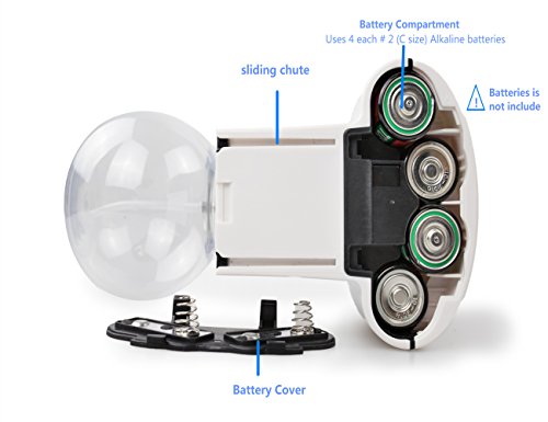 Energy Efficient: Lasts up to 1 year with 4 each # 2 (C size) Alkaline batteries (not included). 100% Worry-free with 12-month Warranty.