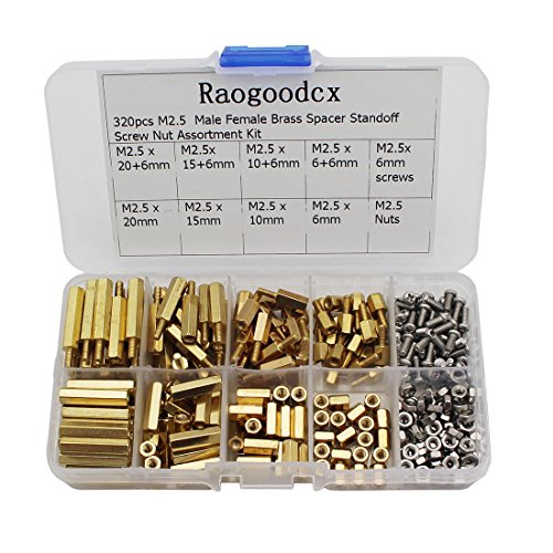 Raogoodcx 320Pcs M2.5 Male Female Brass Spacer Standoff Screw 6mm 10mm 15mm 20mm Nut Assortment Kit