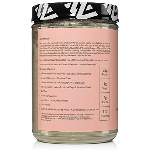 ONLY TWO INGREDIENTS: 100% Grass Fed Pure Whey Protein and Organic Japanese Matcha Green Tea Powder. Naked Whey + Matcha Chocolate contains no artificial sweeteners or colors and is GMO-Free, Growth Hormone Free, Soy Free and Gluten-Free.