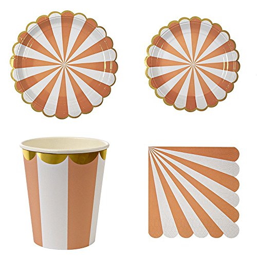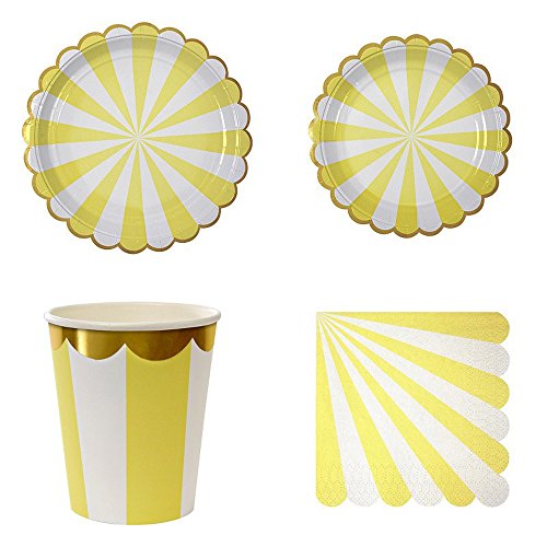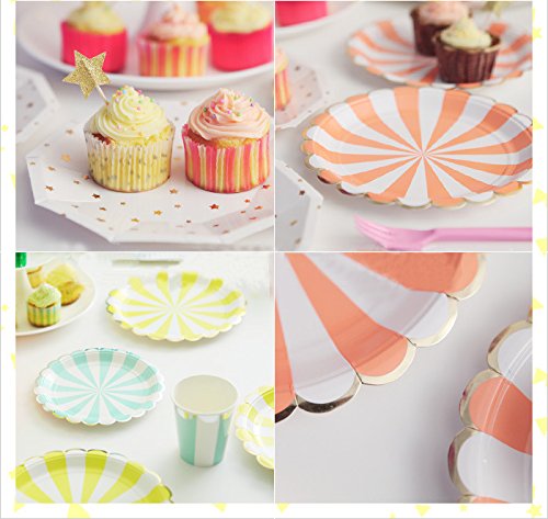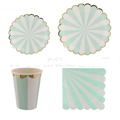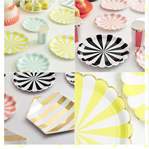 -. Feature : COLORFUL DESIGN: compact striped design,Gold Pressed process. 4 colors you can choose. Perfect table set on birthday party,your chidren must be like it / SAFETY:100% toxic-free, environment friendly.Convenient and portable / Birthday Party Tableware Kit for 16 Guests:(16) 7 Inch (18 cm) Paper Plates (16) 9 Inch (23cm) Paper Plates,(16) 9.5 oz (270ml) Paper Cups,(40) Napkins (13"x13") / Perfect Party Supplies Set: Suitable for putting slice,cakes,cupcakes,muffins,cookies,fruits etc. / WIDE APPLICATION: Birthday, Wedding,Nursery,Party,Festival,Thanksgiving Day,Christmas Banquet,BBQ and any other special occasions