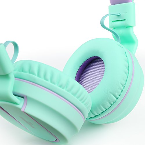 Ailihen I35 Stereo Lightweight Foldable Headphones Adjustable Headband Headsets with Microphone 3.5mm for Cellphones Smartphones Iphone Laptop Computer Mp3/4 Earphones (Green Purple)