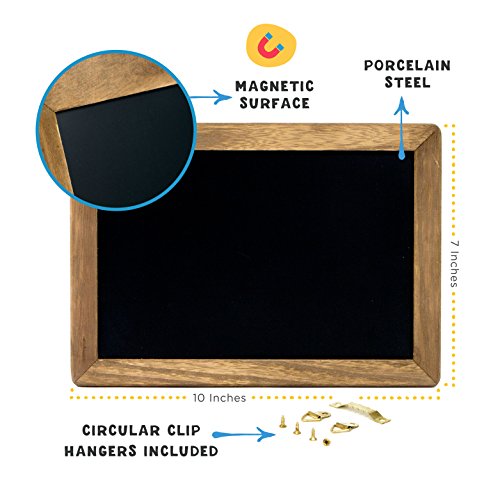 Display café daily specials, post important messages around the office, or liven up your seasonal home decor with this Vintage Framed Steel Wall Mounted Chalkboard Sign. Manufactured to the highest standards, this 7"x10" wall chalkboard features a fade-resistant magnetic surface for chalk marker ink and a vintage wood frame for that rustic look. Complete erasing is quick and easy so your signs always look sharp and fresh.