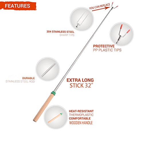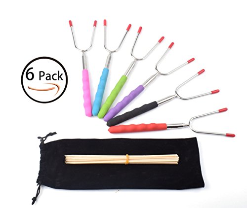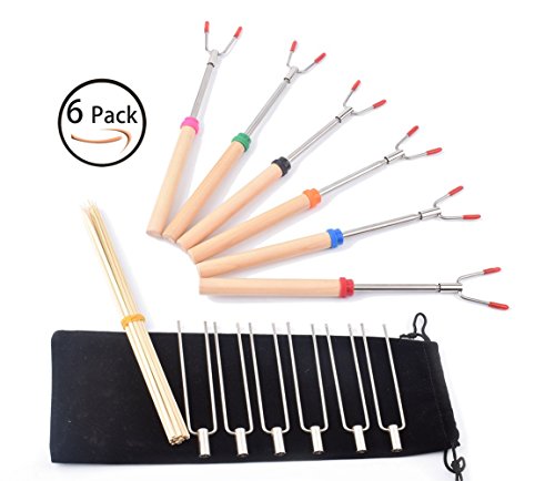 (AIMACI)/Camping Hiking/Camping Cookware/DIRECT FROM USA/Premium Marshmallow Roasting Sticks Set of 6 Extendable Telescoping 34" Forks with 15 Bamboo St...