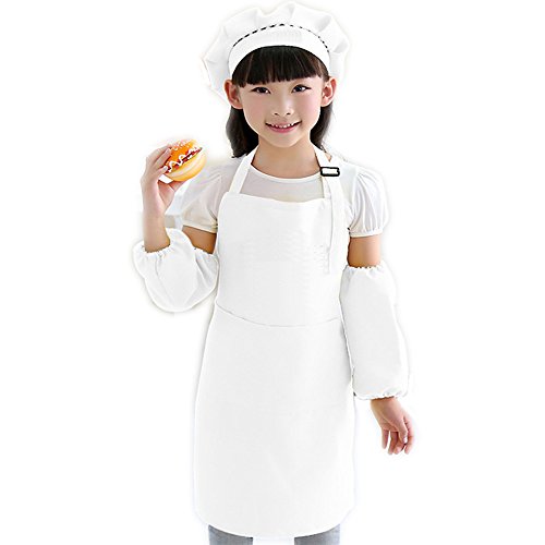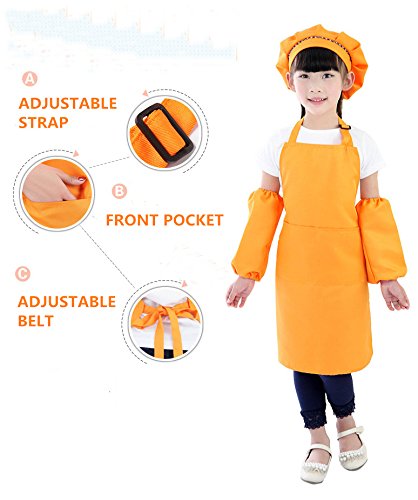 Children Kids Chef Hat,Sleevelet And Apron with Pockets Adjustable Neck strapsfor Kitchen, Classroom Community Event Party Crafts Art Painting