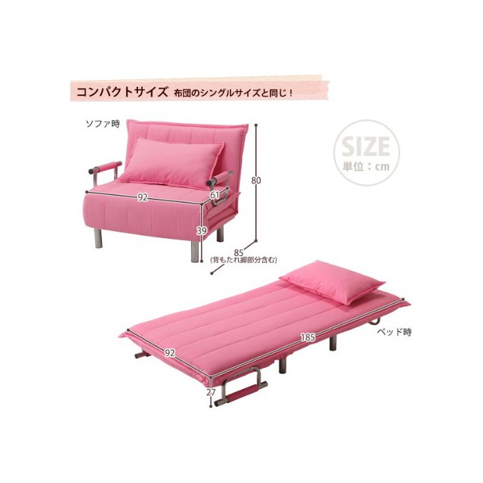 상품 사이즈:『소파』약폭92×(길이)깊이85×높이80㎝ 좌면높이39 『베드』약폭92×(길이)깊이185×높이27㎝