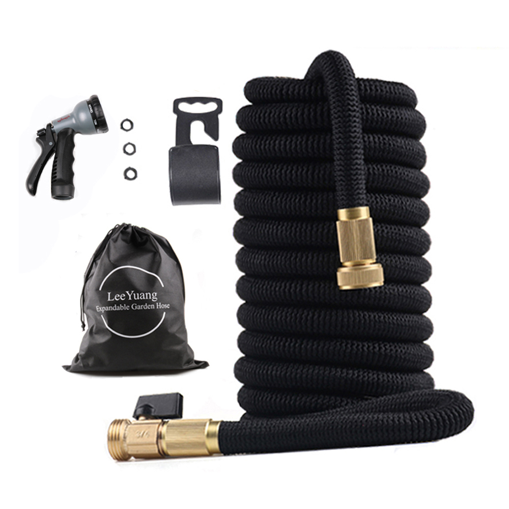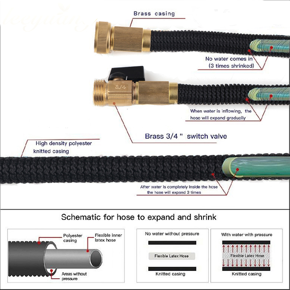This expandable hose is made from durable latex core and high strength polyester outer for excellent durability. The solid brass connector will not break.