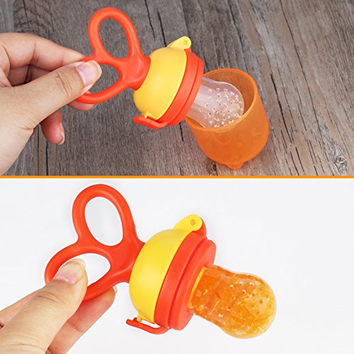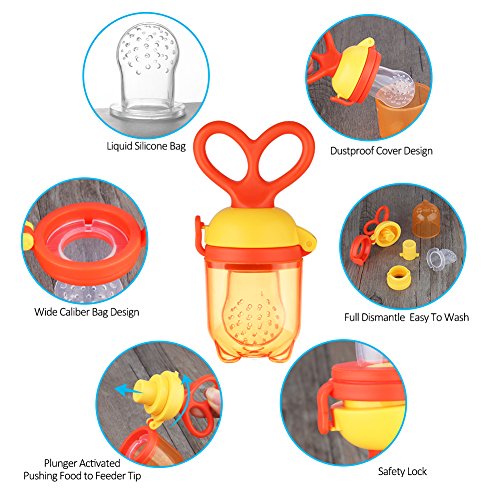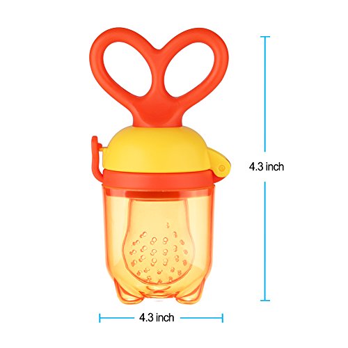 -. Feature : ❤100% Food-Grade Materials - Your baby's safety is our P.R.Iority, our baby fruit feeders are made from the highest food grade silicone. No BPA, phthalates, lead or petroleum, so it is safe for baby to nibble and munch on. / ❤Safe, Stress-Free Feeding - Designed with tiny holes, avoid the fear of choking, as the feeder has holes that are small enough not to allow food pieces or seeds to go through and put your baby in danger. Super easy to clean, finally enjoy some peace of mind with the thought that your baby is perfectly taken care of. / ❤Unique Rotating Handle - This lovely baby food feeder features a unique ROTATING HANDLE which allows your baby to take in more food. Simply, push the food to the tip of the feeder by rotating the feeding handle. This function makes baby feeding time a lot easier and fun for both moms and babies. Also, the feeder is carefully designed with a symmetrical handle that makes it easy for the baby to grab safely. / ❤3 Sizes of nipples - Moms always like to think ahead and so we have included in the package 3 different sizes of nipples (0-3month,3- 6month,6month+) to accommodate your baby's needs as he/she is growing. / ❤Easy to Clean - Unlike mesh feeders, this fruit pacifier cleans quickly & easily. You can even sterilize it in boiling water. Plus, it won't retain odor or stain like average baby feeding products.