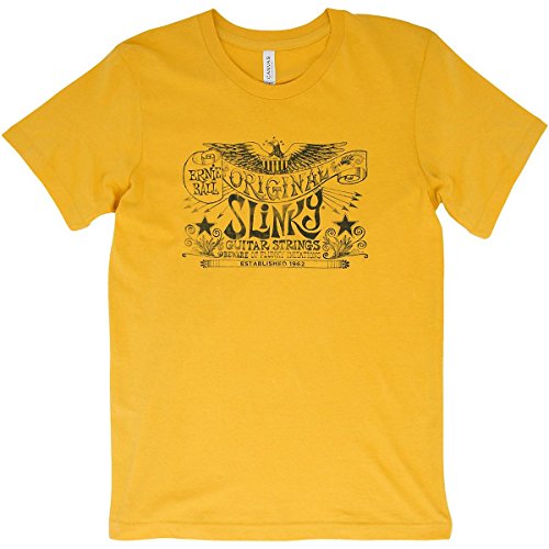 Studio : Ernie Ball Music Man Publisher : Ernie Ball Music Man Binding : Electronics Product Description Show your Ernie Ball pride with this original Ernie Ball eagle banner t-shirt. Features the original Ernie Ball eagle Slinky art in black on a 100% cotton mustard yellow shirt. Banner art features "Balls are best", "Ernie Ball logo, Original Slinky guitar strings, "Beware Flunky Imitations", and Established 1962 messaging. Size XXL. Country of origin may vary. 0