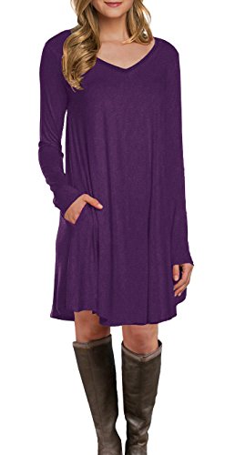 (LILBETTER)/Women/Dresses/DIRECT FROM USA/LILBETTER Women's Long Sleeve Pocket Casual Loose T-Shirt Dress