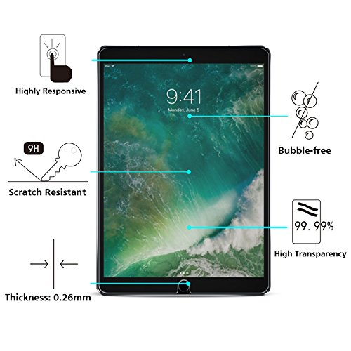 2. Scratch Resistant. This 9H Hardness screen protector can effectively protect your Apple iPad Pro 10.5 inch from unwanted scuffs and scratches by knife, keys and some other hard substances
