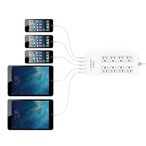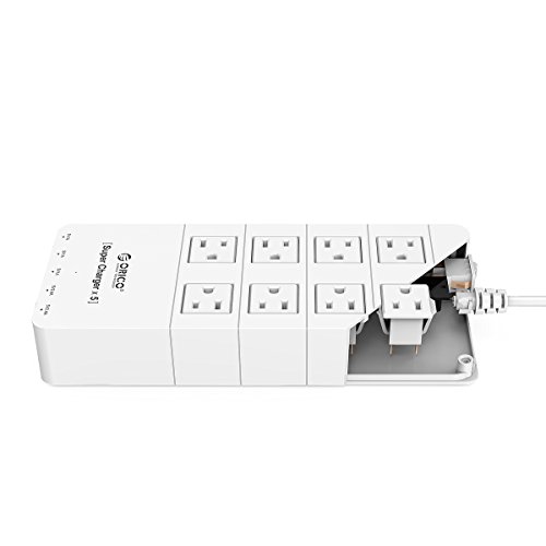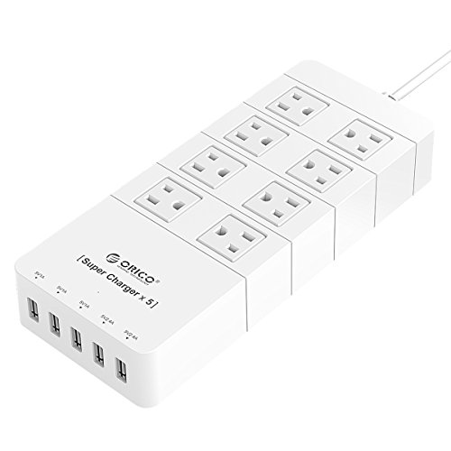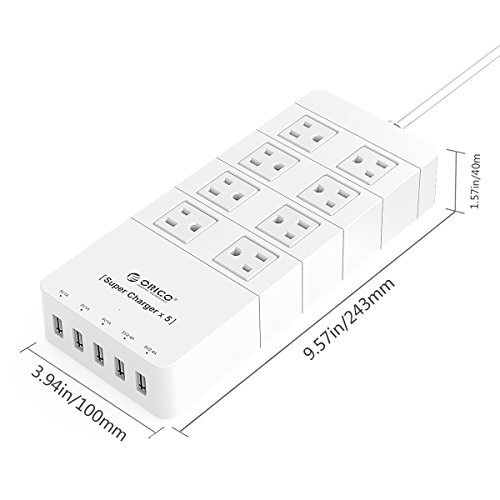 ORICO 8 Outlet Surge Protector Power Strip with 40W 5 Ports USB Charger (White)