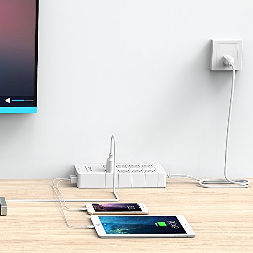 Interface: 3-pin AC*8/5V2.4A*5 (Intelligent Current Control).Intelligent USB Power: 5 USB Super Charging Ports with a MAX power output of 40W which can detect your devices and deliver the ideal charging speed up to 2.4 amps per port