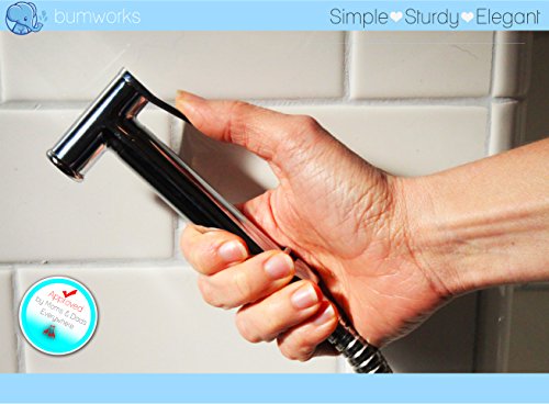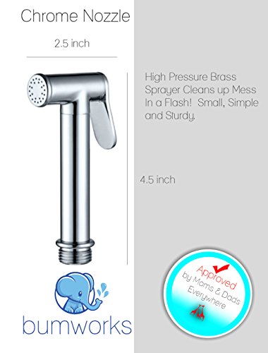 Bumworks Cloth Diaper Toilet Sprayer Kit by Kaydee Baby - Brass Chrome Hand Held Bidet Shattaf, Metal Hose, T-Valve (7/8 inch), and Mounting Clip...