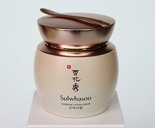 -. Feature : Sulhwasoo Everefine Lifting Cream(Goa Cream) 60ml / 2.02 fl.oz / Rich moisturizing and lifting cream for correcting signs of aging, including loss of elasticity and skin dryness . Containing a high concentration of nutrient-rich components, the special texture helps the skin maintain firmness and smoothness even overnight. / While boosting the efficacies of coumestrol (CMS), a skin firming component found in Bean Leaves extracts, by ten times, Sulwhasoo combines it with licorice and Ginkgo leaves to create MaeseondanTM, which helps increase skin firmness. The Ginger extracts in the cream also bring out the skin's healthy glow. / The subtle fragrance of White Plum Blossom delivers rejuvenating positive force.