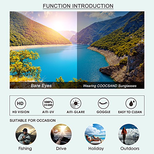 LENS: SHATTERPROOF POLYCARBONATE LENSES. Anti-glare sunglasses with HD polarized lenses can filter out sunlight reflected glare, and protect your eyes from long term damage by blocking 100% of harmful UVA and UVB rays.