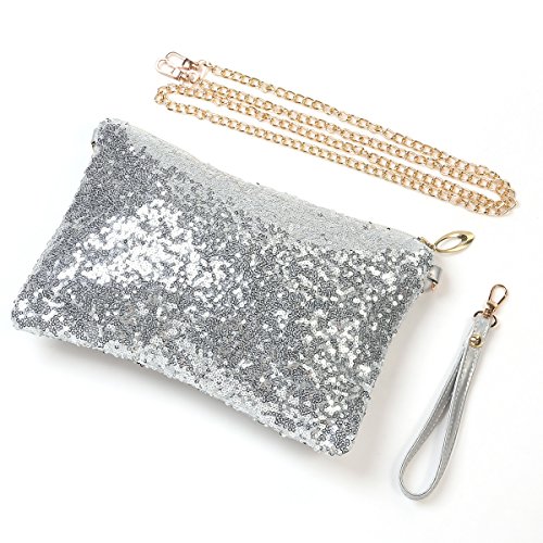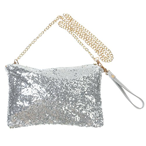 -. Title : OULII Fashion Glitter Bag Handbag Party Evening Clutch Shoulder Bag for Women (Silver)