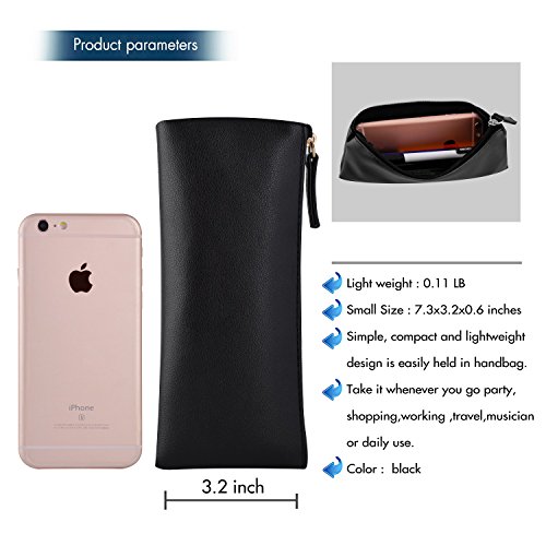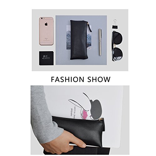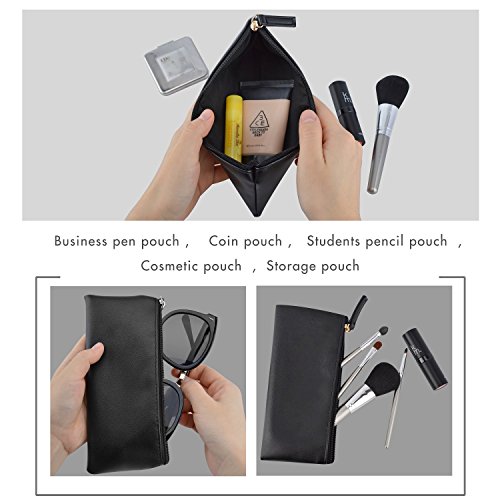 MROCO Pencil Case Leather Pencil Case Pouch, Small Pencil Pouch Canvas/PU Leather Pencil Case Soft Pencil Case Makeup Pouch Makeup Case Cosmetic Pouch with Zipper for School,Office,Travel(Black)