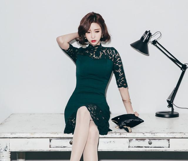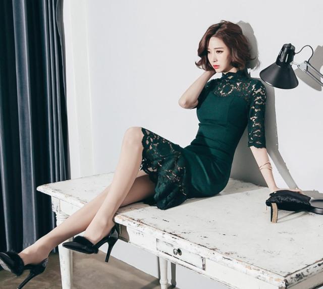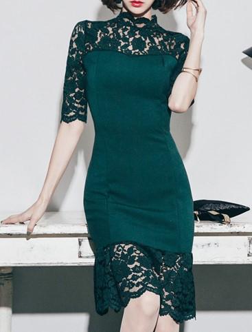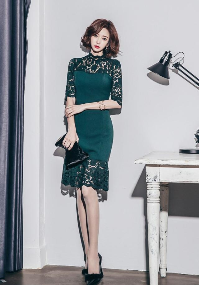 ワンピース ドレス マーメイドドレス タイトドレス レース ハイネック ミモレ丈ドレス 五分袖ドレス 大人可愛い 上品 ゴージャス セクシー ドレッシー ブライダル 結婚式 披露宴 二次会 パーティー 海外 ノーブランド トレンド 無地