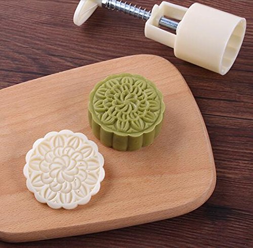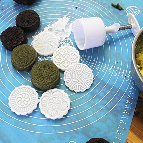 Zicome Round Moon Cake Mold with 6 Stamps, Flowers Design, White