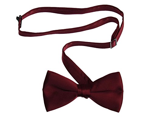 Quality pre-tied bow tie in both kids and adults sizes. These ties are made from a quality Polyester Satin material blend for a quality appearance. Each tie features a wrap around adjustable neck strap that hooks in the back so you can easily fit many different neck sizes. We recommend the kids tie for ages 3-8 and the adult tie for ages 10-UP (These sizes are recommendations however it is up the customer to decide what they prefer for in between ages)