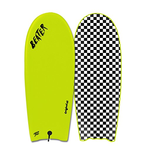 Studio : Catch Surf Publisher : Catch Surf Binding : Misc. Product Description THE ORIGINAL ALL-PURPOSE, FULLY-CUSTOMIZABLE SHRED STICK! Surf it with or without fins, bodyboard or skim it; do whatever the heck you want. The Beater will turn an average beach day into an epic tale of radness! Features a strong, light-weight and water-resistant core with dual (x2) maple-ply wood stringers and high density bottom to make it the stiffest most durable Beater ever made! Available in all-new colors. Single-Fin model comes with 4.5 raked fin and the twin-fin comes with 3.5 keel fins. All Original PRO models are equipped with our new hi-performance fin system and 4 Beater PRO model Keel fins. 48 (4'0) x 20 x 2.5 (27 Liters) 54 (46) x 20 x 2.5 (30 Liters) FEATURES All-purpose, customizable shred stick! Fun for all skill levels! And can take a Beating! Tapered D-rails and twin-channel crescent tail for finless performance. Dual-composite core with twin maple-wood stringers. Old-School 8lb PE deck and impact resistant HDPE slick skin. Pop-thru leash plug at tail. Soft pop-thru removable fins (single and twin fin models only). Hi-Performance fin system with Beater PRO model Keel fins. Requires surf wax for grip. Designed in California, U.S.A. by Catch Surf. PATENTED DESIGN! Patent #: D631926, D637249, D637250, D637252 PLEASE NOTE: Images do not show deck plugs present on some boards. You may or may not receive a board with deck plugs. The fin boxes are exactly the same on both versions. If this is important to you, please email or call about the specific color you are interested in and we can let you know if it has the deck plugs or not. 0