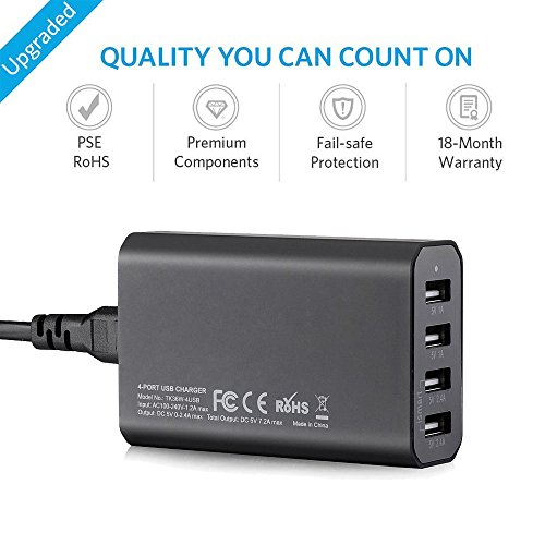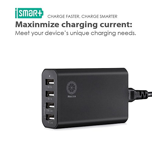 -. Feature : Family-Sized: An industry-leading total 10A current 50 watts through 6 ports lets you charge any combination of phones, tablets or other USB-charged devices simultaneously. / Guaranteed Safety: UL certified design, industry grade materials and premium circuitry ensure superior performance and reliability. 100-240 volt input ideal for international travel. / Multiple safety protections:short circuit,over current,over voltage,over heat. / What You Get: Nozza 50W 6-Port Desktop Charger,detachable power cord, welcome guide, our fan-favorite 12-month warranty and friendly customer service.