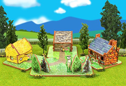 -. Feature : Toy House and Storybook based on the classic Three Little Pigs fairytale / Comes with 3 toy houses, 4 dolls, furniture, storybook and carrying case / Put it together like a 3D puzzle, take it apart as many times as you like - no tools or screws required. Toy house, dolls and furniture pieces store flat in portable carrying case / All pieces and storybook feature beautiful hand-painted illustrations / Ages 3+
