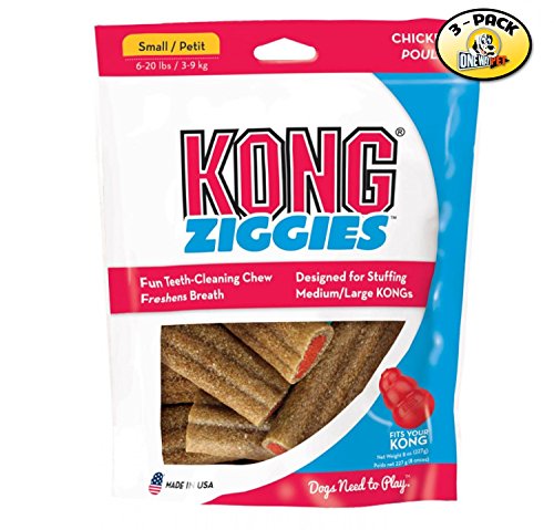 -. Feature : Pack of 3 / Kong Ziggies are healthy dog treats designed for stuffing inside small Kong interactive toys / Designed for stuffing inside Small Classic and Extreme KONGs / For adult dogs, these highly digestible treats work to help to freshen breath and clean teeth / Freshens breath and cleans teeth, easy to digest