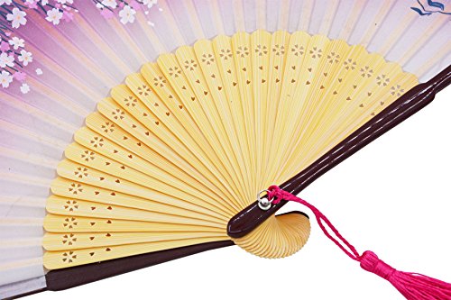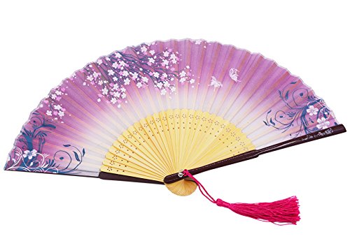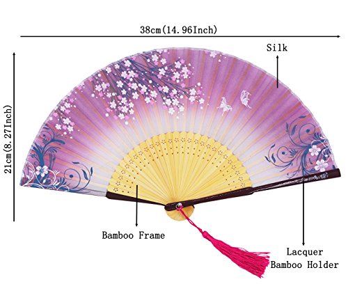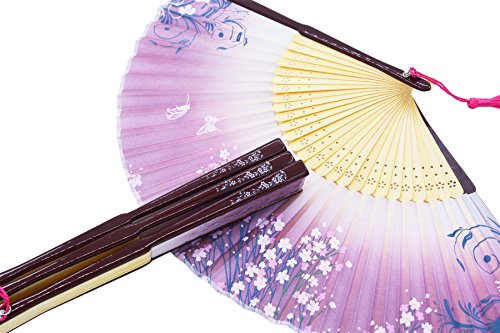 Meifan Chinese /Japanses Classical Handmade Vintage Folding Bamboo Silk Flower Pattern Hand Fan FMI (Purple)